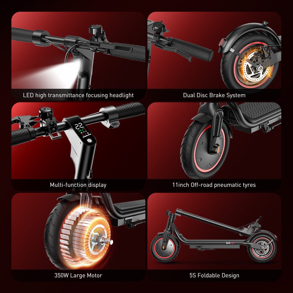 W5 jest wyposażony w bezszczotkowy silnik 350W, który osiąga maksymalną prędkość 30 km/h i zdolność pokonywania wzniesień do 15°, co zapewnia łatwe przyspieszanie i płynniejszą jazdę.