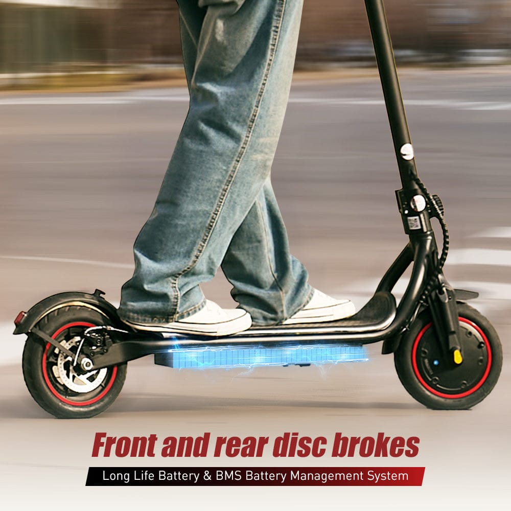 Wyposażony w hamulec elektryczny i tarczowy na tylnym kole, zapewniający szybką reakcję i skuteczne hamowanie. Podwójne hamulce gwarantują bezpieczniejszą i spokojniejszą jazdę.