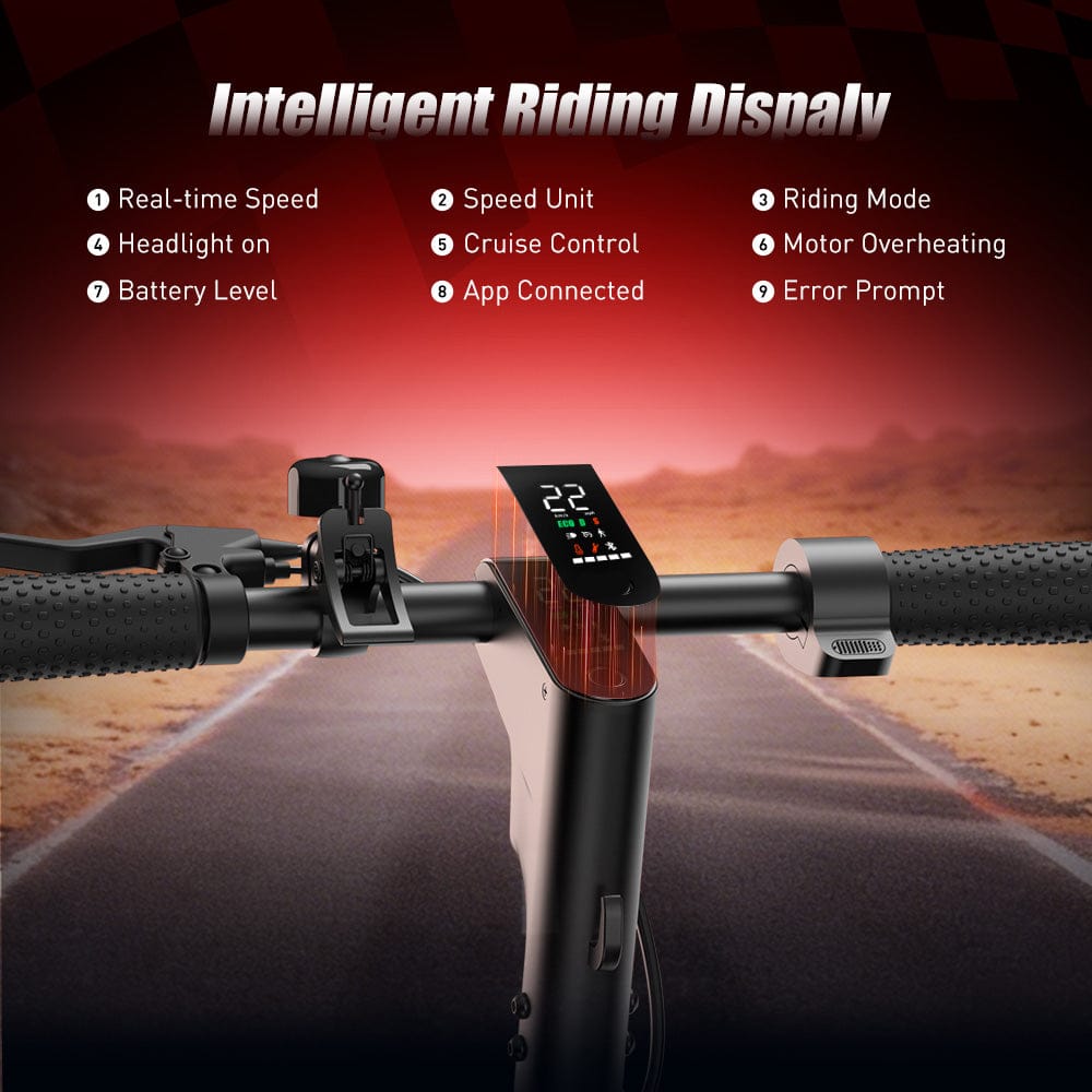 Wyposażony w czytelny wyświetlacz LED, współpracuje z aplikacją X-scooter, oferując kompleksowe funkcje, w tym monitorowanie stanu baterii, wyświetlanie prędkości, zmianę biegów i analizę danych z jazdy.